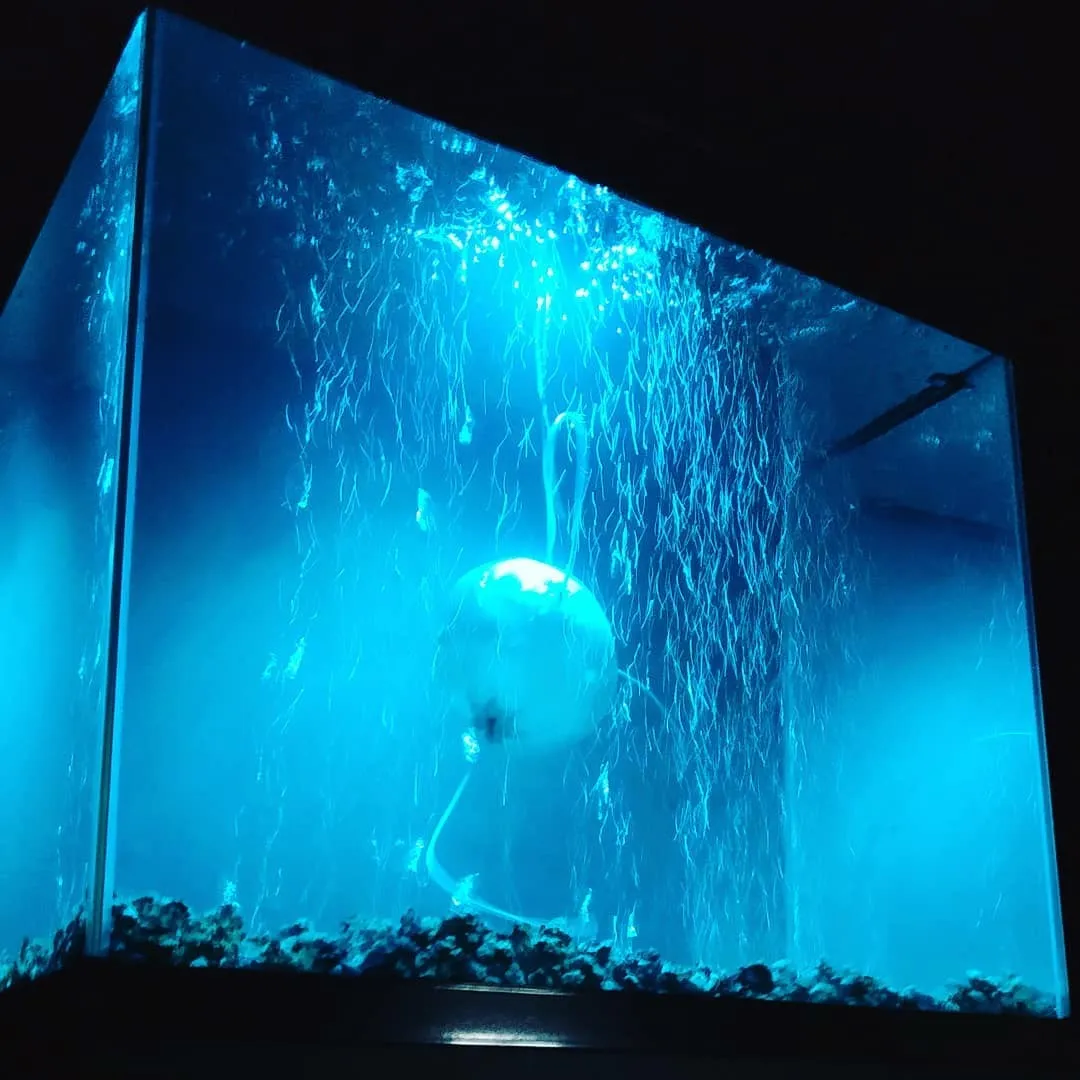 An underwater robotic installation imagines an archaea-like survivor for worlds shaped by climate collapse and post-human adaptation.